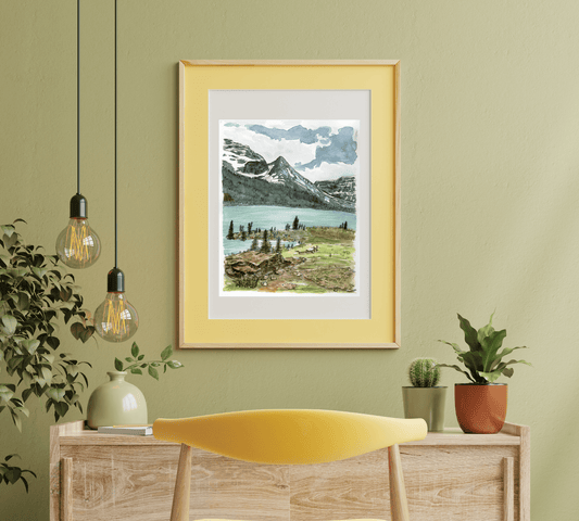 Many Glacier Montana - East Glacier National Park in Pen and Watercolor - Archival Quality Art Print