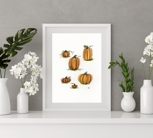 Pumpkins - Pen and Watercolor Archival Art Print