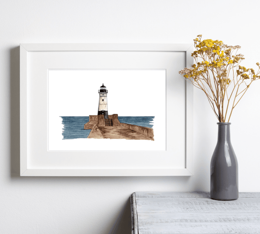 Duluth Lighthouse Illustration - Pen and Watercolor Art - Archival Quality Art Print