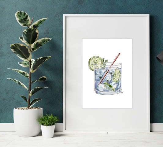 Gin and Tonic - Pen and Watercolor Archival Art Print
