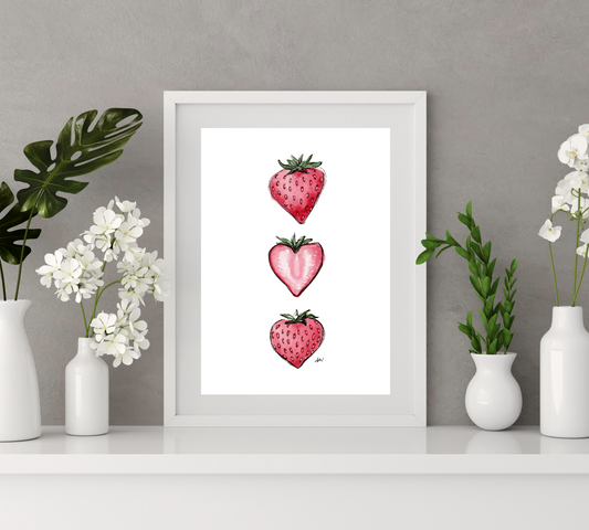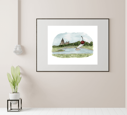 Cherry and Spoon Sculpture - Pen and Watercolor Art - Archival Quality Art Print