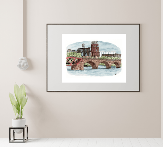 Pillsbury at the Stone Arch - Pen and Watercolor Art - Archival Quality Art Print