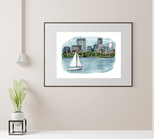 Bde Maka Ska view of Minneapolis - Pen and Watercolor Art - Archival Quality Art Print