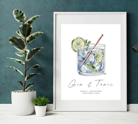 Gin and Tonic - Pen and Watercolor Archival Art Print