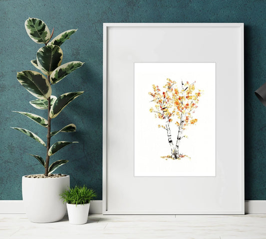 Birch Trees - Pen and Watercolor Archival Art Print