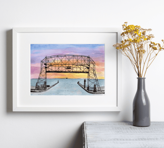 Duluth Lift Bridge Pen and Watercolor Art - Archival Quality Art Print