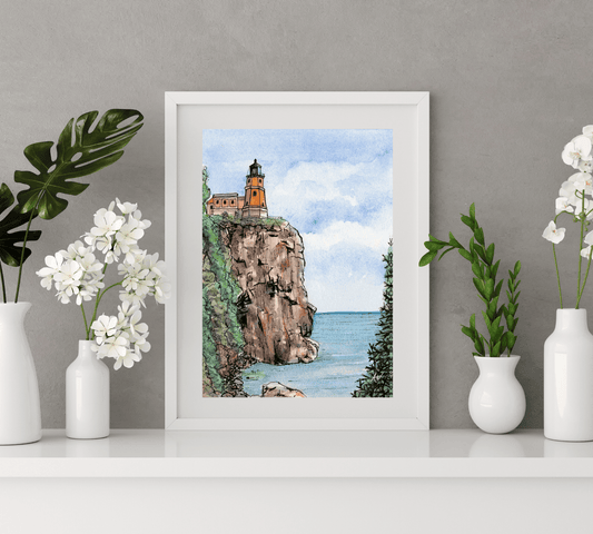 Split Rock Lighthouse in Pen and Watercolor - Archival Quality Art Print