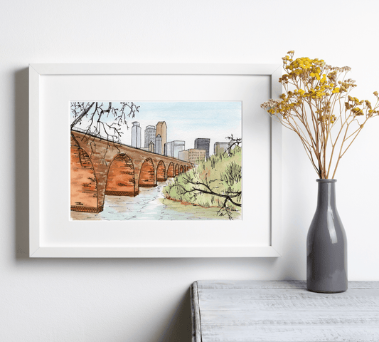 Minneapolis in Spring in Pen and Watercolor - Archival Quality Art Print