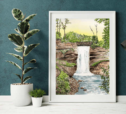Minnehaha Falls in Minneapolis - Pen and Watercolor Art - Archival Quality Art Print
