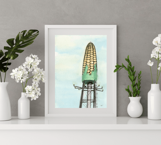 Rochester Corn Water Tower Pen and Watercolor Painting - Archival Quality Art Print