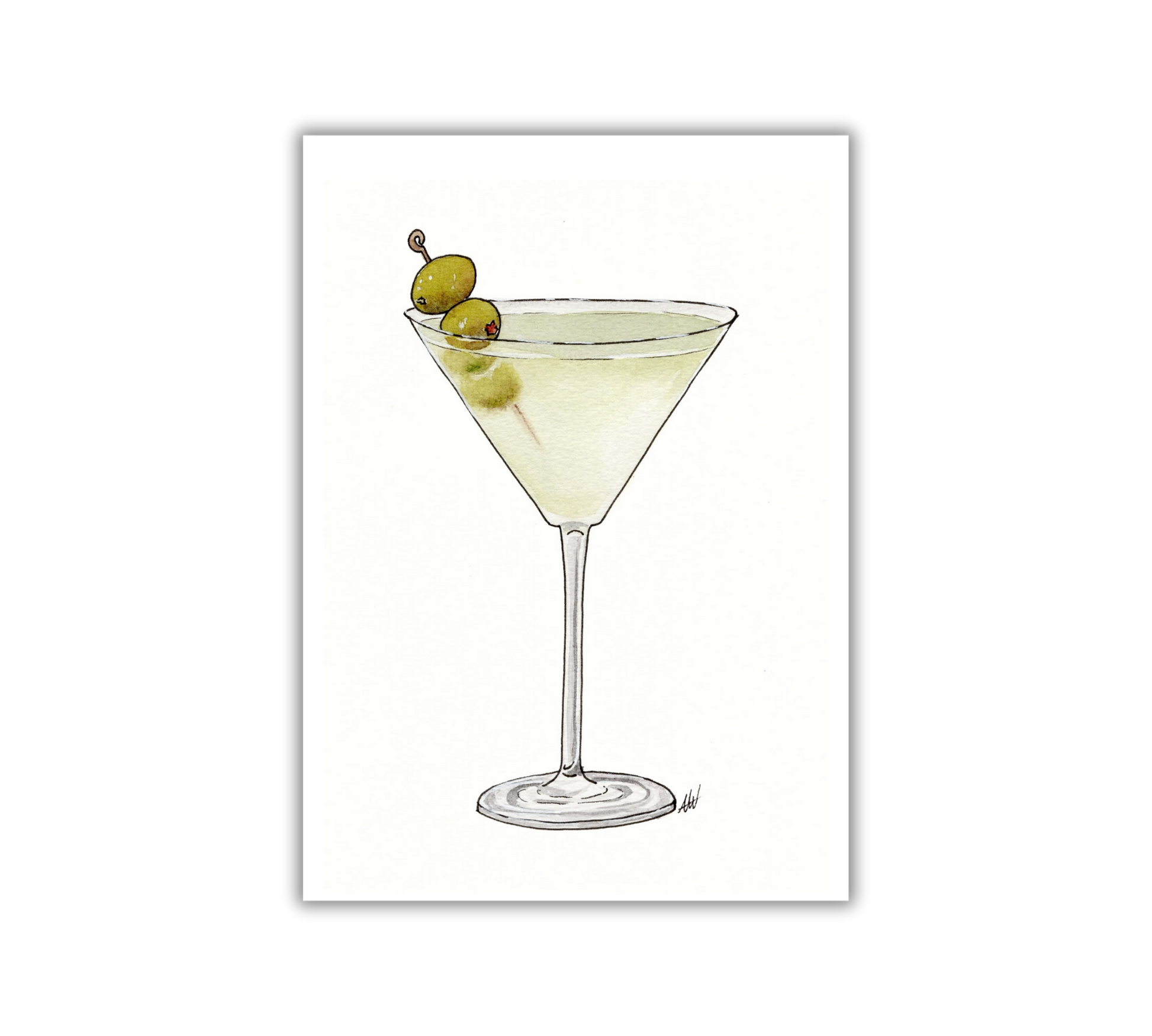 Dirty Martini - Pen and Watercolor Archival Art Print