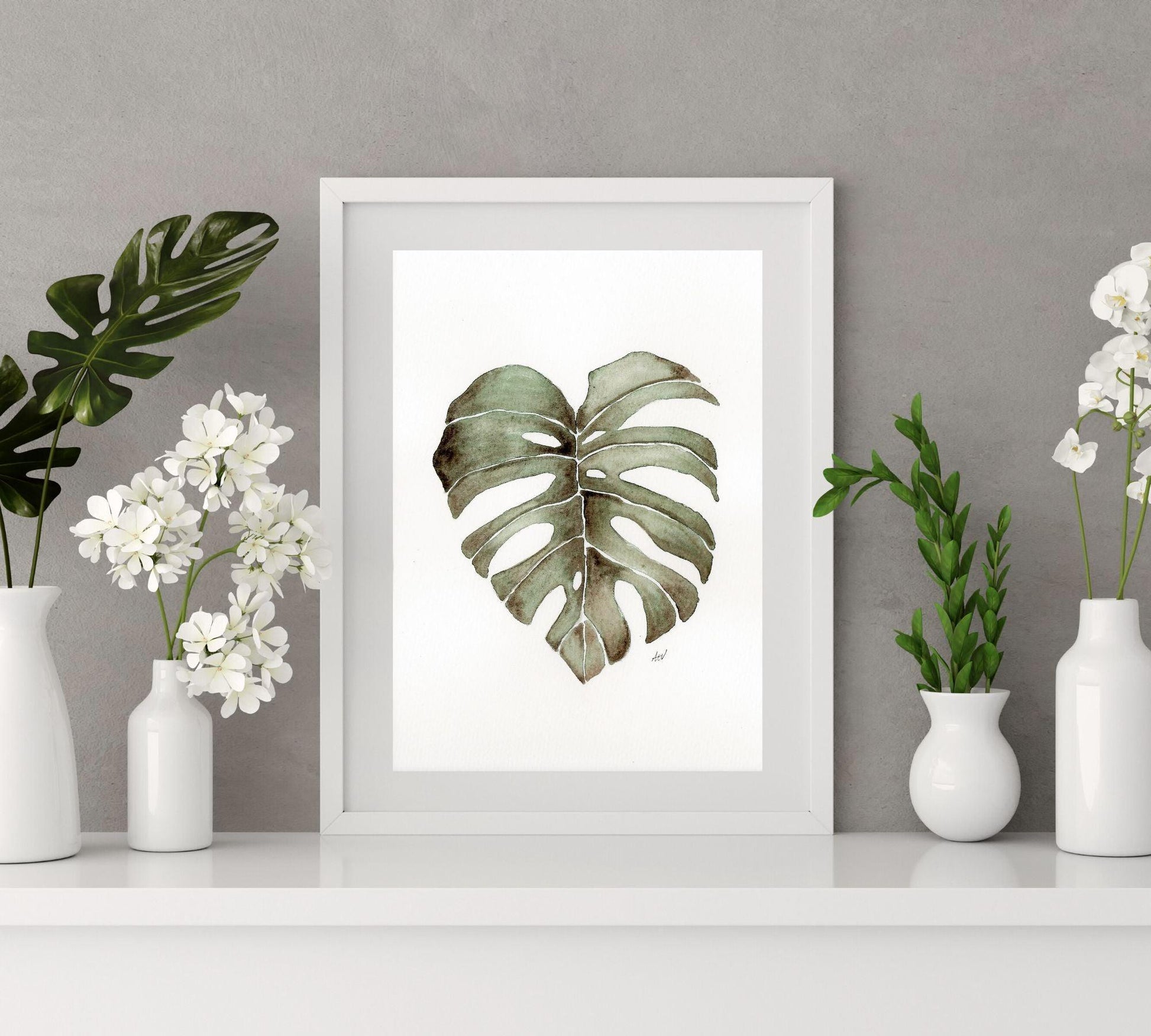 Bring natural beauty into your space with this fine art print featuring a pen and watercolor illustration of a monstera leaf. Known for its bold shape and iconic split leaves, the monstera plant adds a tropical, modern touch to any home decor style. Perfect for plant lovers, fans of botanical art, and modern interior design.